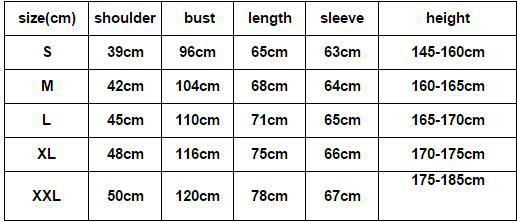 Ce vêtement est en taille asiatique, donc nous vous conseillons de prendre une taille au dessus. Par exemple si vous portez S, prenez du M. Ou suivez le guide des tailles pour trouver votre taille.
